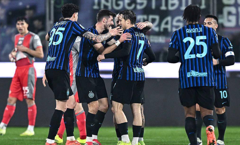 比赛一开始,实力明显高出一截的国米就反客为主,把皮球牢牢控制在自己脚下。数据显示,整场比赛国米的控球率高达74%,而克雷莫纳只有26%。第8分钟,国米就差点破门,埃斯波西托禁区内的一脚低射击中了立柱弹出。克雷莫纳逃过一劫,但该来的还是来了。